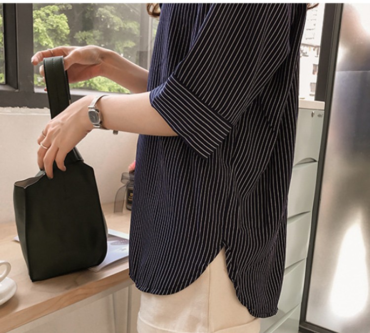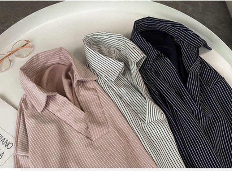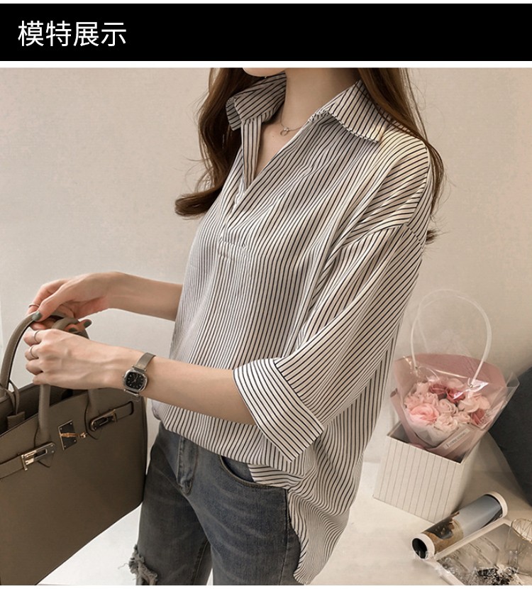 新款韓版寬松顯瘦七分袖條紋襯衫